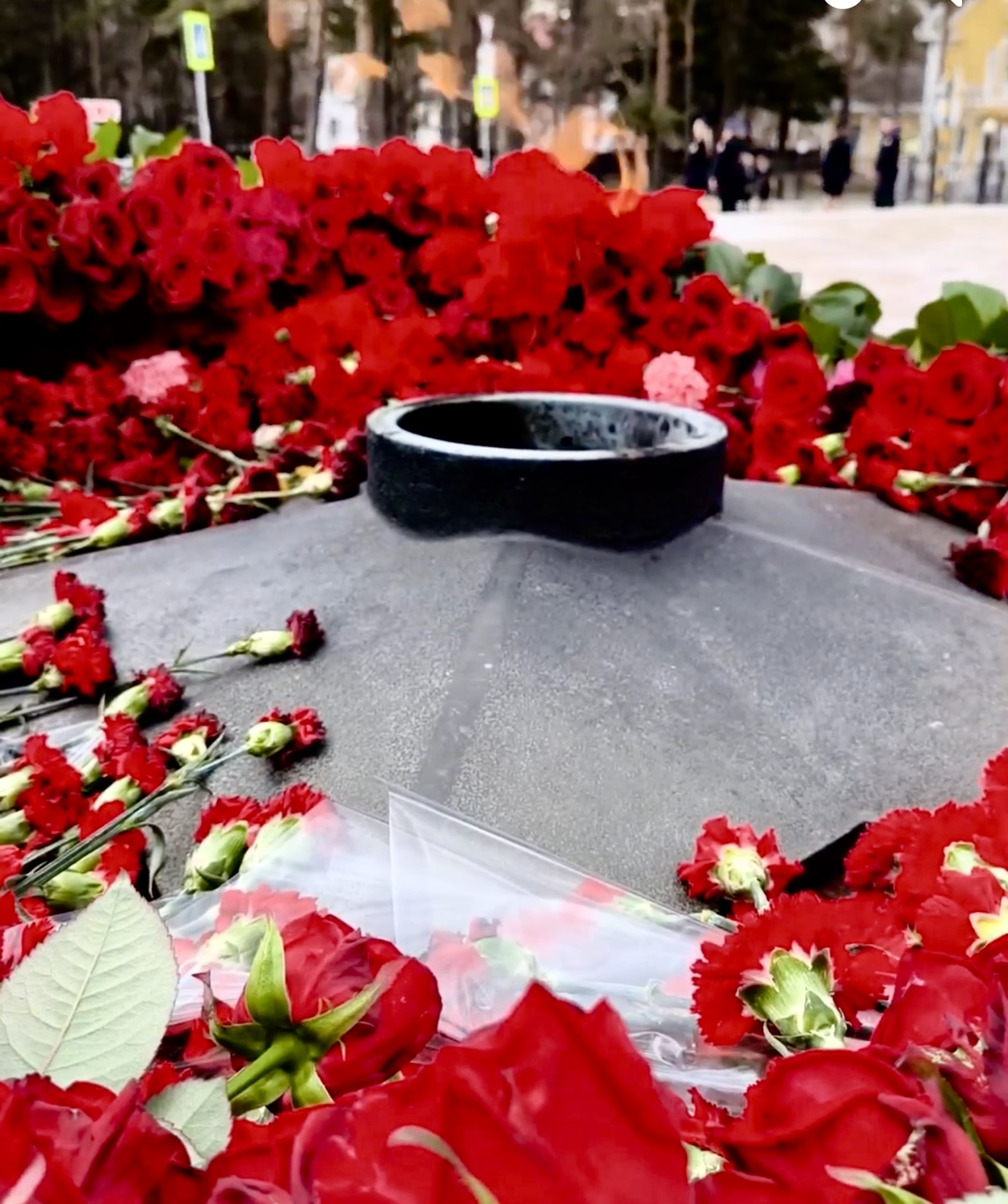 цветы к Вечному огню мемориального комплекса на площади Славы в Южно-Сахалинске. Участники мероприятия почтили память о героическом подвиге павших в Великой Отечественной войне минутой молчания. |